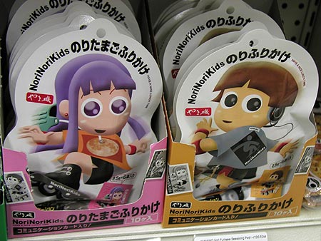 I received what should be my last gifts of this holiday season…when we swung by the post office this morning to pick up a package. On Christmas Day I was given a Barnes and Noble gift card, and, in true geek fashion, used it immediately upon returning home that evening. I ordered two books I’ve been curious about…Craig Thompson’s Blankets and Sarah Vowell’s The Partly Cloudy Patriot. You can guess what sort of Saturday night excitement I’ll be having. Afterwards the little man got two more gifts as well. A lovely hand-knit hat and a Leappad, from the lovely ladies. Now we just need to get some more batteries for the latter (seems we never have enough around). Then it was on to the Walker Art Center for the second to last Free Family Day, before they shut the building down for a major rennovation. We enjoyed an animated short, courtesy of the Museum of Modern Art’s film library. It was a 1954 version of The Grasshopper and the Ant tale, done by Lotte Reiniger. Then there were some newer shorts from a series called Nonsense Poems and Lullabies…or something along those lines. They looked all bright and shiny, but some were downright dark in content, with a nearly Edward Gorey feel to them. No complaints here. We had a brief break to play in the arts and crafts room, but then it was back to the auditorium to watch the X-Treme Spinners Yo Yo Club doing their thing. I knew the little man would enjoy it, but hadn’t realized how over-the-top excited he would be. He could hardly sit down (and didn’t, much of the time), was constantly clapping his hands and cat-calling, and even started busting some serious dance moves when music from The Blues Brothers was on. After that raucous good time we were beat, and in need of nourishment. Our little group headed to Evergreen, of course, and had our fill. Which was good thinking as I needed to stop by United Noodles to stock up on a few things. If I’d gone on an empty stomach I would have spent much more than $11. I’ve long been tempted to take photos of a few items there…foods with cool packaging that are, unfortunately, not vegan-safe. But I’d feel like a big touristy dork whipping out my camera at a store that I frequent on a regular basis. I got my chance today as the place was so danged busy, no one noticed as I covertly snapped off a few shots of NoriNoriKids, while taking a picture of my own kid sitting in the grocery cart. Score.
